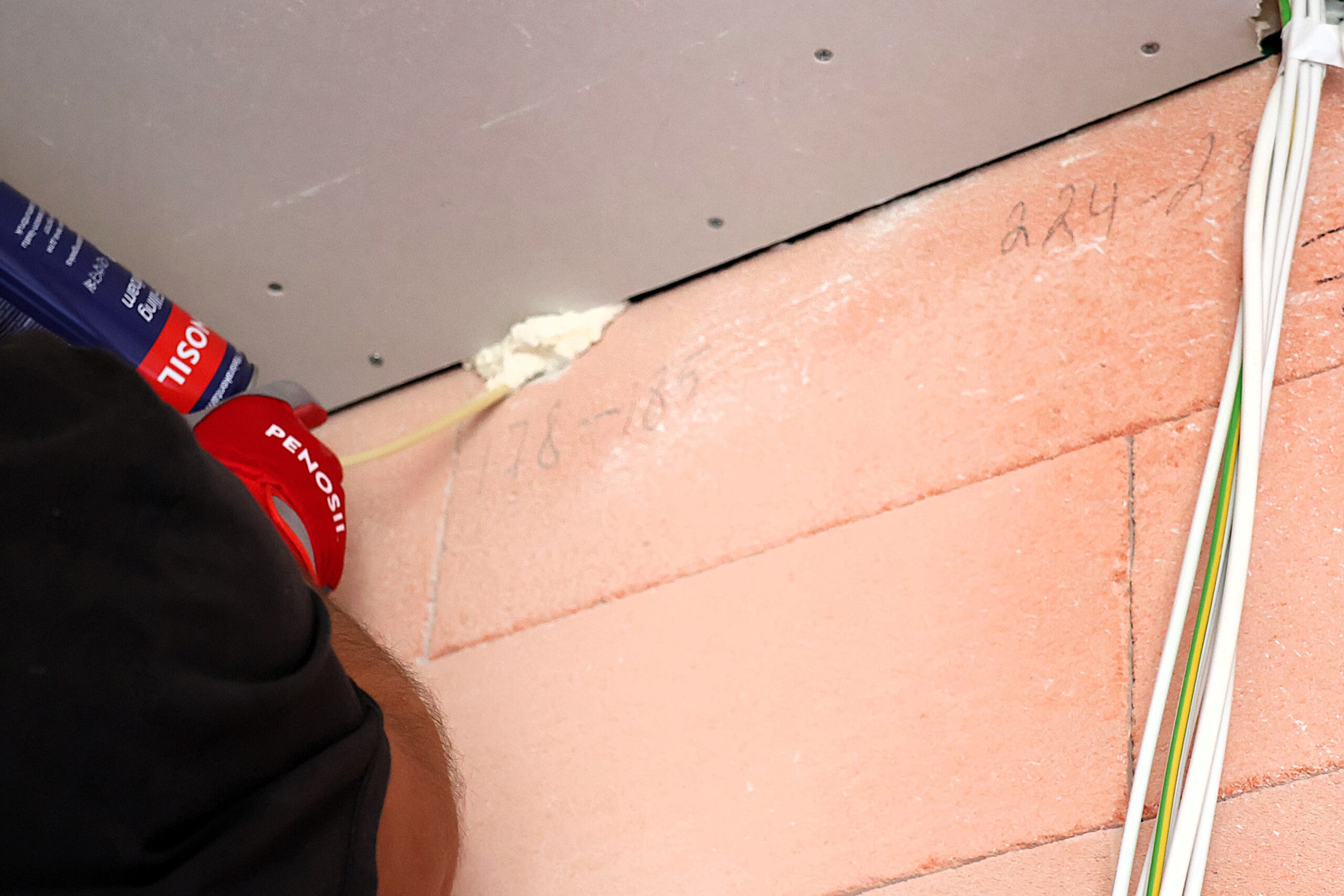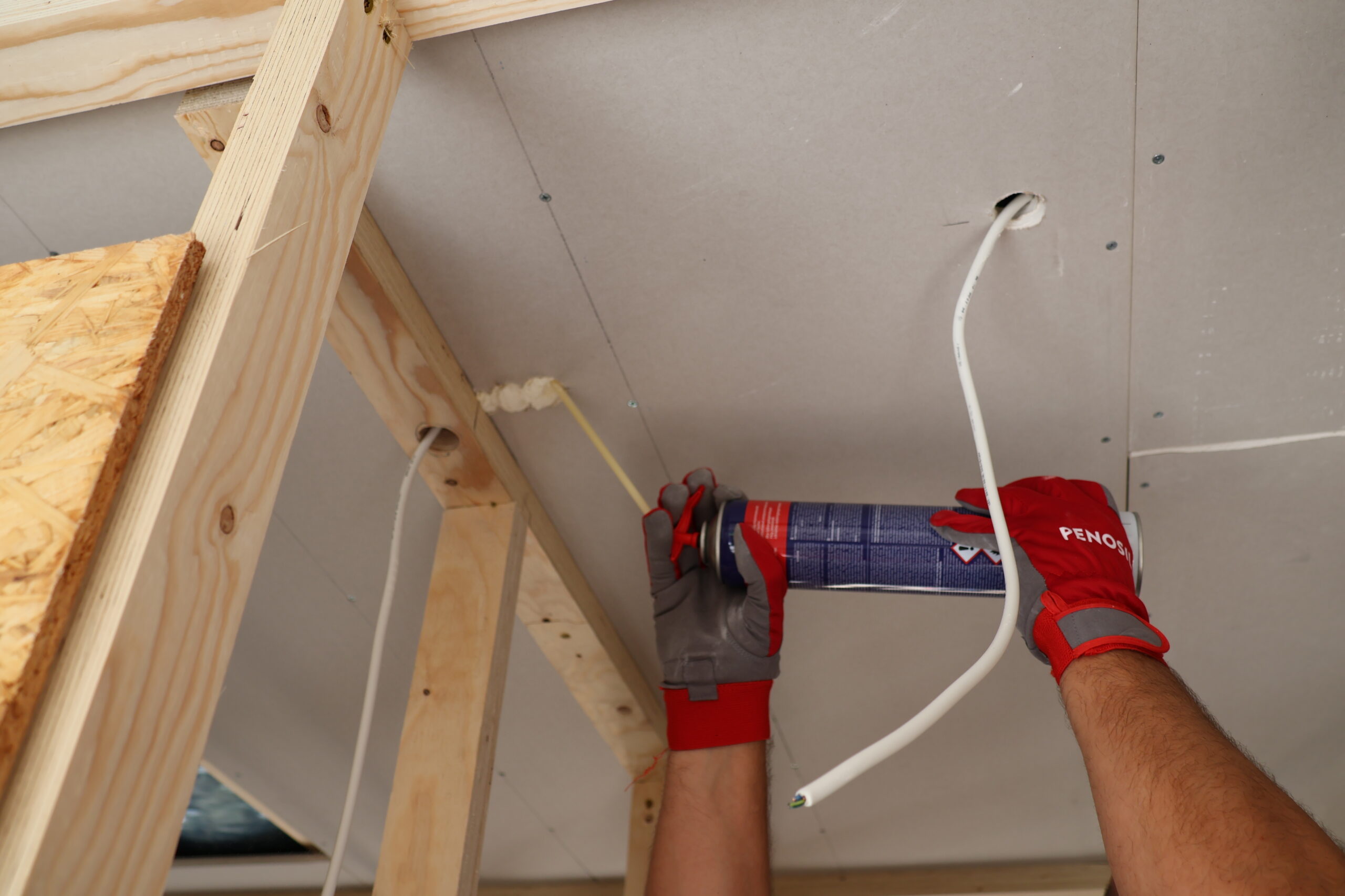 Die Fugen bis zu ca. 50% auffüllen. Bei größeren Fugen ist der Schaum in mehreren Schichten aufzutragen und zwischen den einzelnen Schichten leicht anzufeuchten. Überschüssiger Schaum kann nach dem vollständigen Aushärten abgeschnitten werden.