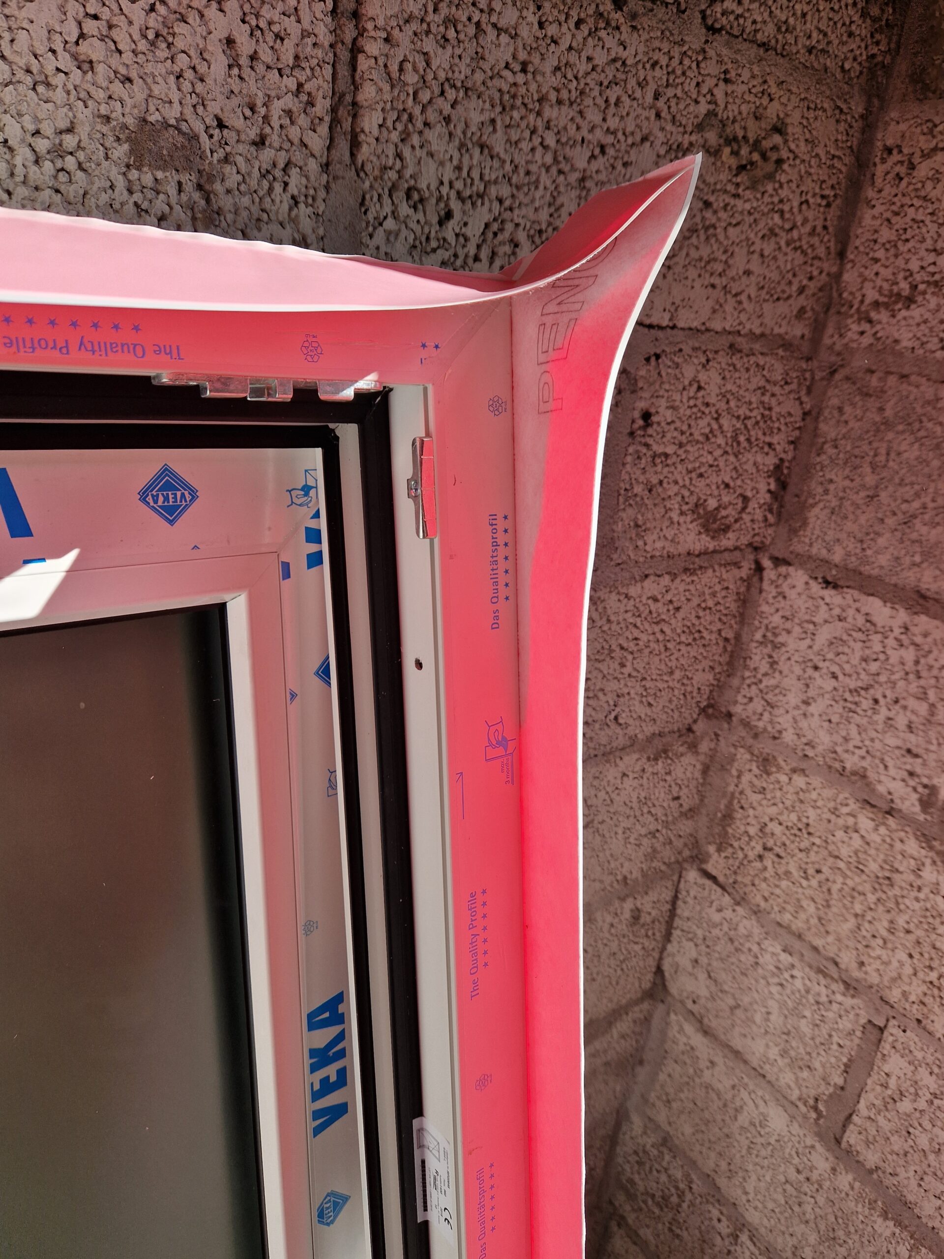 Das Band wird über den gesamten Umfang des Rahmens geklebt, beginnend mit der unteren Fensterleiste (untere Leiste). Verfahren Sie mit allen zu versiegelnden Seiten auf die gleiche Weise. Richten Sie dann den Fenster- oder Türpfosten aus, befestigen Sie ihn ordnungsgemäß und füllen Sie die Fensterfuge mit Bauschaum aus. Nachdem der Schaum vollständig ausgehärtet ist, entfernen Sie den überschüssigen Schaum und befestigen die andere Kante an der Fensternische/Wand.