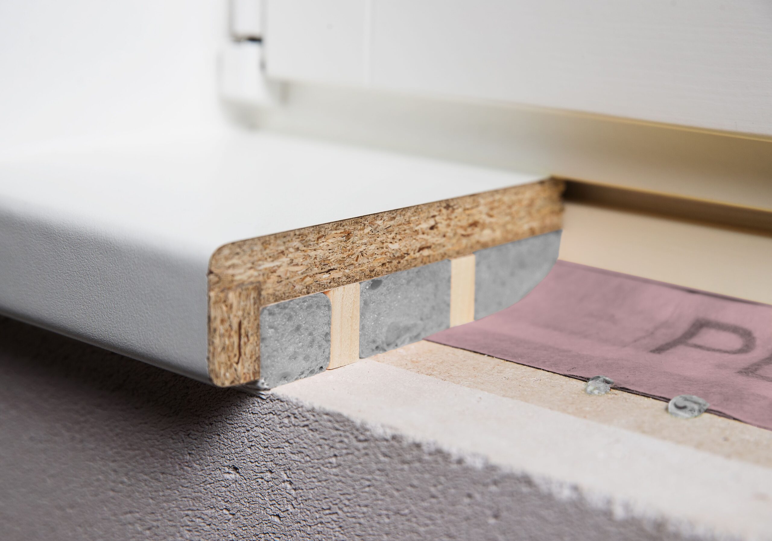 Für eine optimale Klebeverbindung verwenden Sie eine Andruckrolle. Die Klebestreifen auf beiden Seiten des Fensterbandes ermöglichen die Verwendung des Fugenbandes vor oder nach dem Einbau der Fenster/Türen und des Montageschaums. Falls der Klebestreifen verstaubt oder aus anderen Gründen seine Klebeeigenschaften verliert, kann ein Penosil Hybridkleber klar 799 Klebedichtstoff zur Befestigung des Fugenbandes verwendet werden. Das Fugenband muss so schnell wie möglich, spätestens jedoch drei Monate nach dem Anbringen des Fugenbandes, abgedeckt werden.
