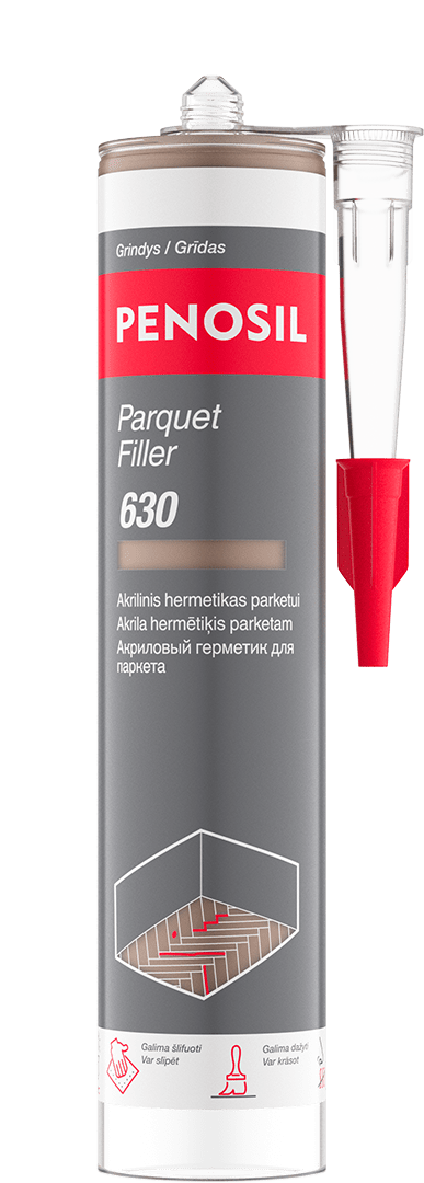 Sustingusį akrilinį parketo glaistą galima šlifuoti ir dažyti. Jeigu dažysite visiškai nesustingusį, dažai sutrūks.