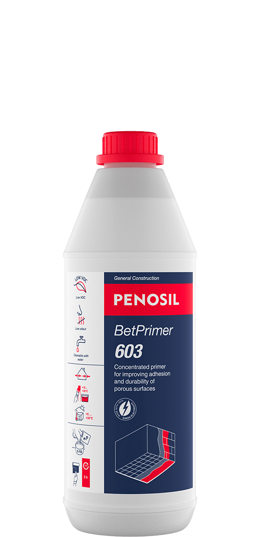 Concrete or levelling mixture can be applied directly onto the moist primer. In the case of ceramic tiles or other non-absorbent surfaces, the primer should dry for about 2 hours before being covered with levelling mixture.