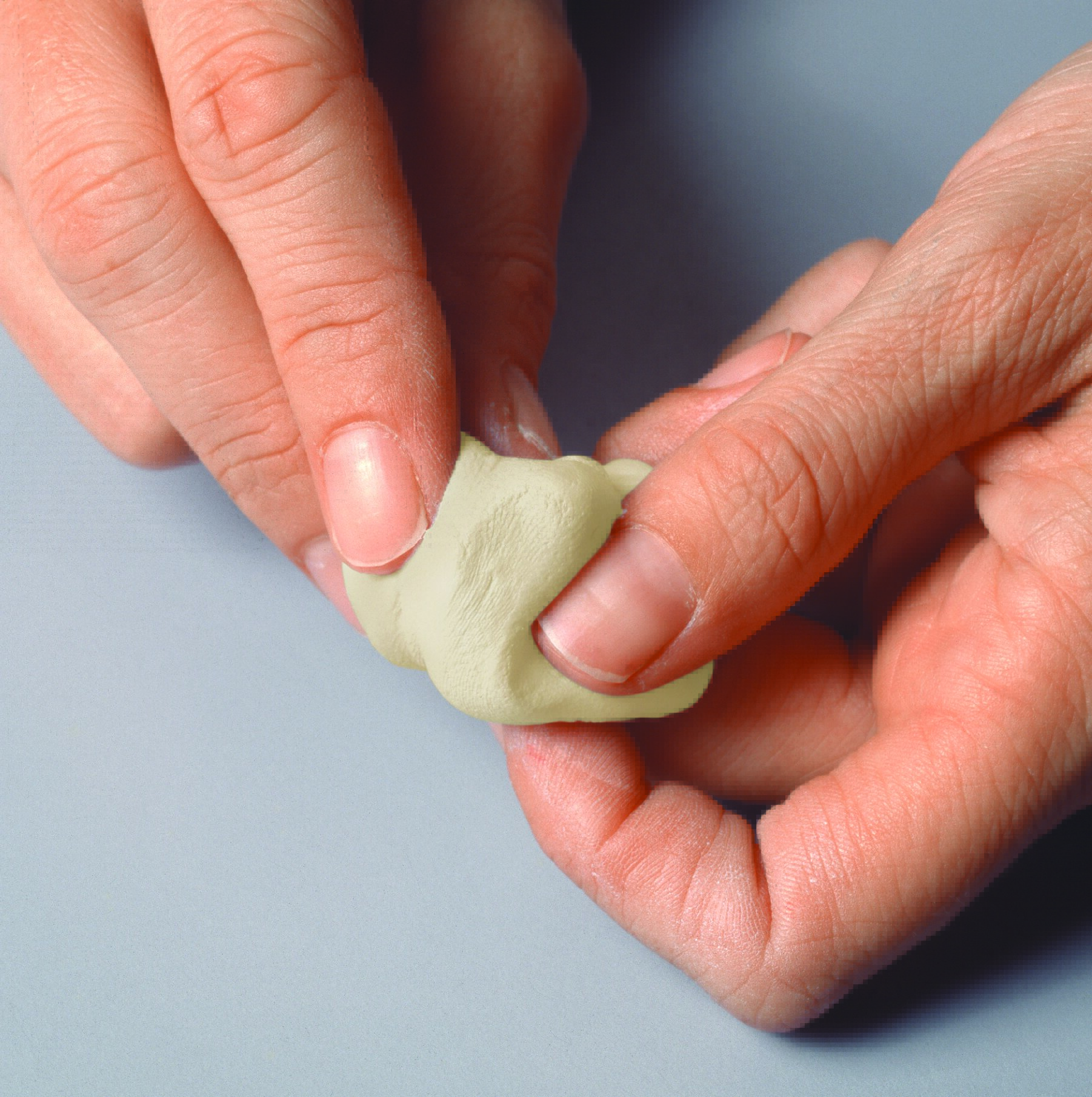 Cut or twist off a required amount of putty. Knead it with your fingers until the putty colour is uniform. If kneading is difficult, warm the putty to a room temperature or slightly above. Uniform mixing is important for a good-quality end result!