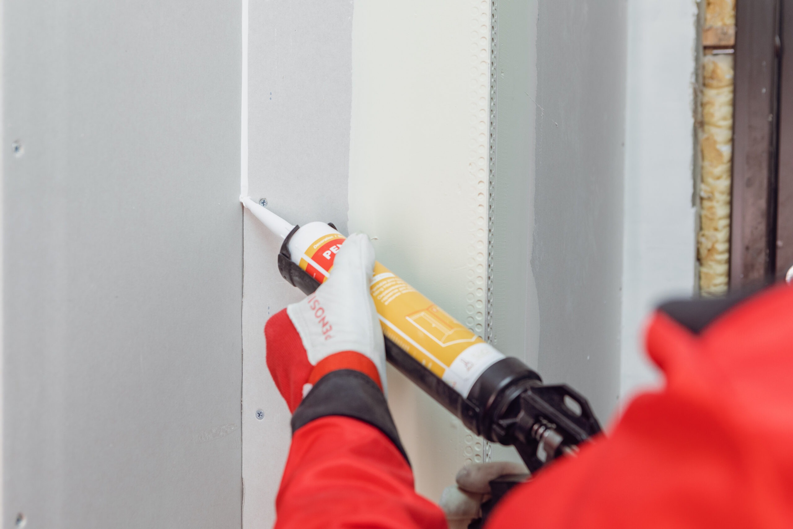 Place the cartridge onto a sealant gun. Apply the sealant by keeping an even pressure at the gun trigger and smoothly dragging the nozzle along the joint.