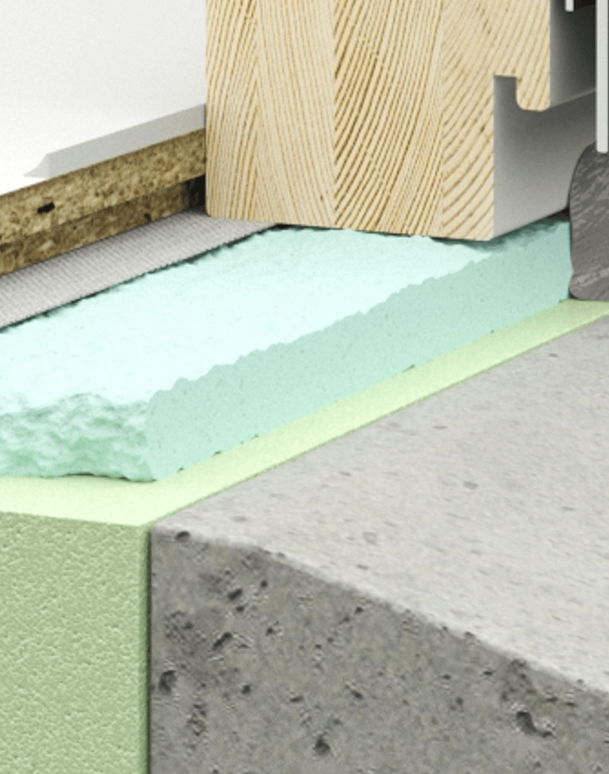 To minimise heat losses around windows, the joints between the window frame and wall must be sealed with a construction foam. For window installation, it is important to choose a PU foam that has an elastic structure and is therefore able to move with the building’s deformations, and which has excellent thermal- and sound-insulation values. Before applying the PU foam, the window must be mechanically fixed and supported according to the window manufacturer’s instructions. When applying the PU foam, the surfaces must be pre-moistened to ensure a uniform foam structure.