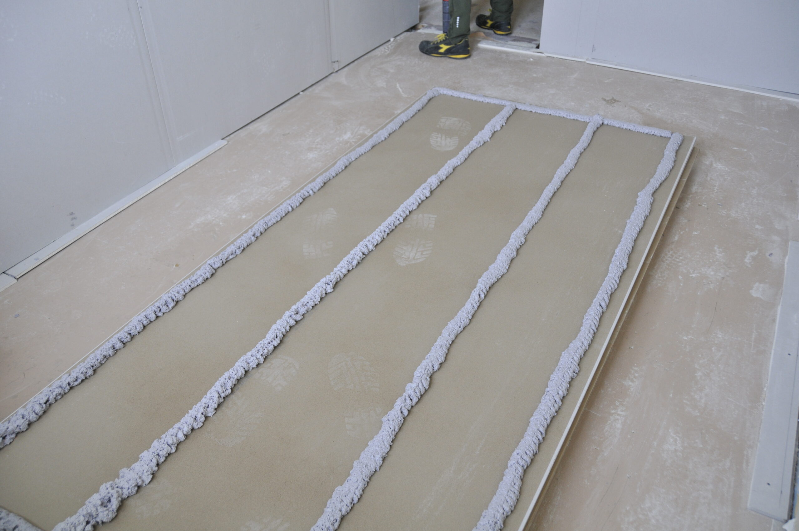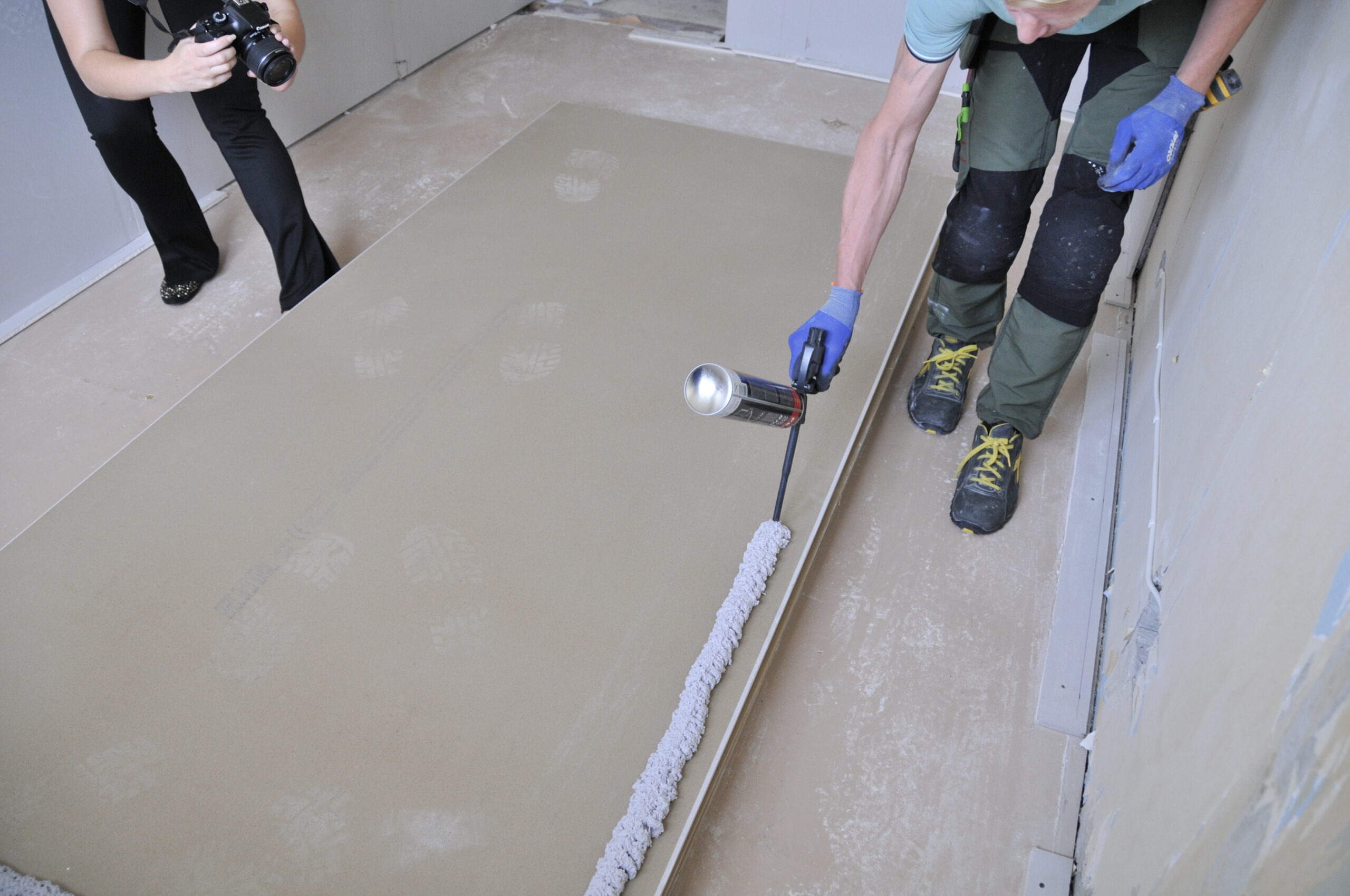 Кріплення утеплювальних плит і плит внутрішньої обробки. Клейову піну наносити на ізоляційну плиту рівномірним струменем паралельно сторонам плити утеплювача (3-4 см від краю) і одну смужку по центру плити паралельно довгій стороні (відстань між смужками клею макс. 25 см). Після нанесення клейової піни на ізоляційну пластину слід почекати 2 хвилини і після цього притиснути плиту до стіни.